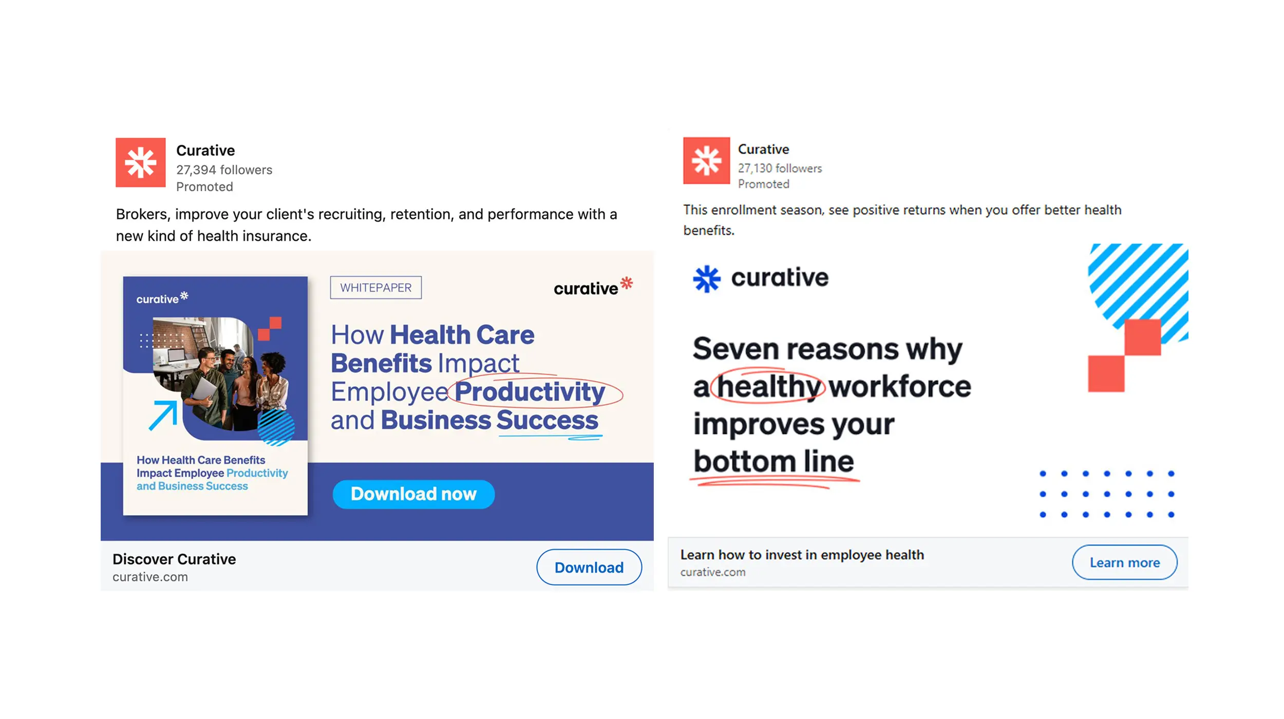 Healthcare benefits purchases involve a web of decision-makers across different organizations. Brokers recommend plans, HR leaders evaluate options and employees ultimately experience the benefits. Our media strategy recognized this complexity, deploying content tailored to each group's priorities: whitepapers on employee productivity for upper-funnel lead generation, care navigator messaging for retargeting engagement and ROI-focused content for low-funnel RFP support. This coordinated approach ensured Curative stayed top-of-mind throughout the entire sales cycle.