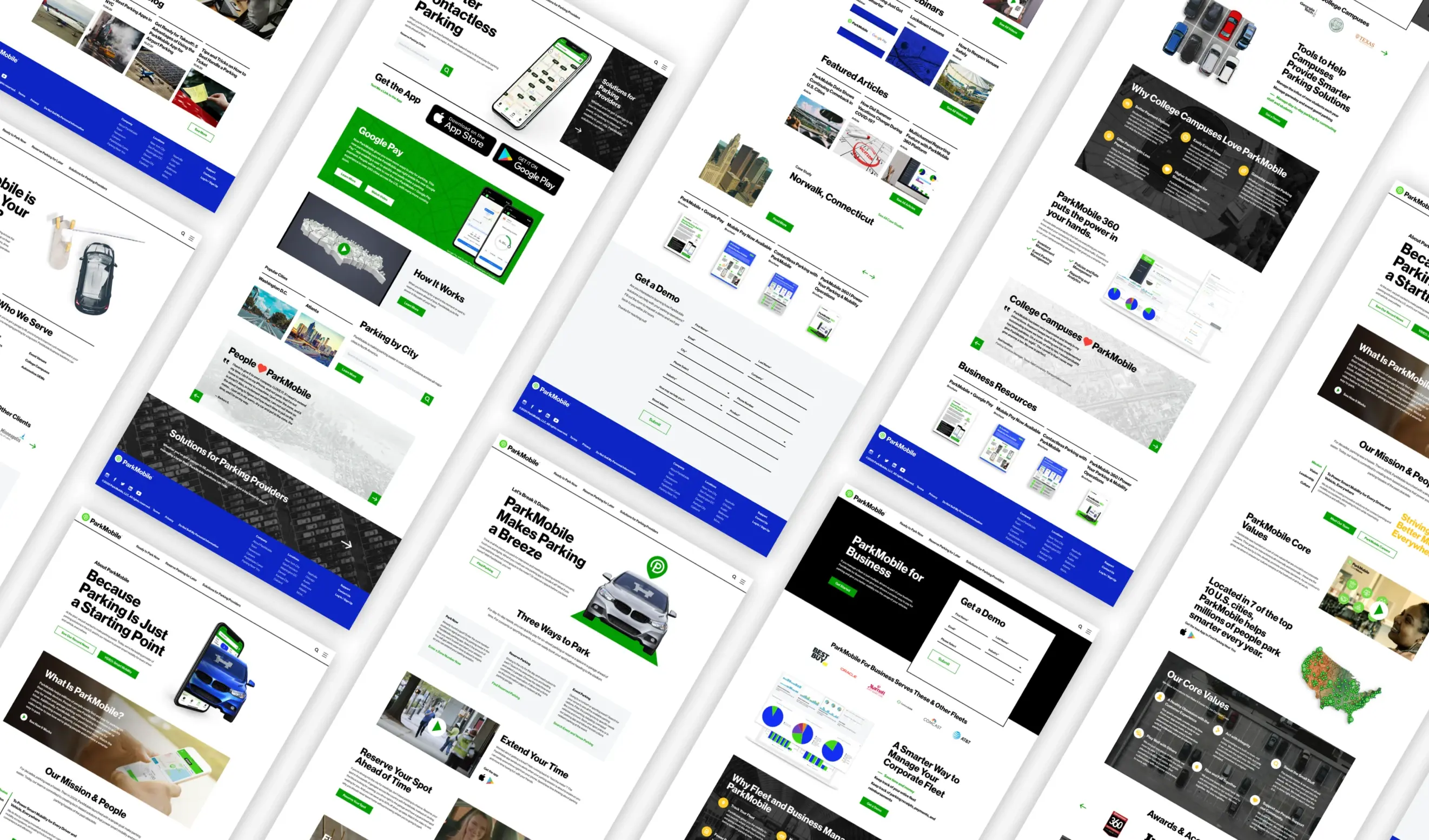 When ParkMobile engaged us to evolve their identity, they were already an established brand. Our goal was to keep it recognizable while elevating it to a more timeless and iconic place. We were inspired by Swiss design, embraced the simplicity of iconography, and leaned into the idea of simplification. Parking is a universal experience so it was important that the design was relatable to everyone.